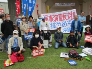 集会には鹿児島・宮崎両県および熊本等からの参加を含めて500人余が参加、鹿児島県内からは約70人が参加しました。この訓練は、九州・沖縄や北海道を含む日本の広域にわたるもので、日米約4,200人が参加するなど米海兵隊との実動訓練としては最大規模のものとなるものです。