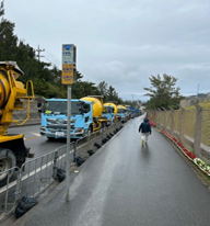 毎日3回、1回に30台ほどの工事車両が基地に出入りする。その工事車両入り口に座りこむ行動が、繰り返されている。工事車両が,入り口付近の道路にならび,大渋滞。特に,朝9時すぎからの渋滞は,通勤などと重なり,一般車両の通行の大きな妨げになっていると感じた。工事車両入り口に,軍隊のようにならぶ警備員と繰り返される移動の呼びかけ。搬入の時間前になると機動隊が現れ,自主的な移動の呼びかけの後,最終通告。そして,強制退去(引っこ抜き)が行われる。座りこみするわたしたちは,抵抗をすれば「逮捕」となることもあるため,じっとして動かず。機動隊側も丁寧に,高齢者には配慮し,座りこみを排除した。その時間,わずか10分。「新基地建設反対」のわたしたちの声を尻目に,工事車両が,基地内へ次々と入っていった。