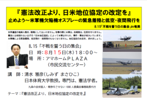 今年も「8・15不戦を誓う日の集会」を開催し、思いを共有したいと思います。多くに皆さんの参加をお待ちしています。