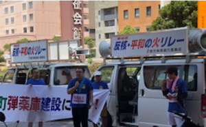 猛暑の中、今年も「語り継ごう、走り継ごう、広島・長崎・沖縄の心を!」をスローガンに、核兵器廃絶、戦争反対、平和を願い、県民へアピールしながらトーチリレーし、県下各市町村の自治体へ要請書申し入れ行動を、実行委員会(青年部・女性部)を中心に行いました。7月18日の出水地区を皮切りに、県内各地区を一巡し、8月9日の奄美大島での行動まで走り抜きました。広島原爆投下の8月6日には、鹿児島市内を走りました。その際には、労働者福祉会館での激励集会で、県護憲平和フォーラムからも連帯のあいさつを行いました。