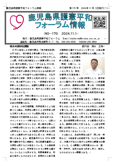 鹿児島県護憲平和フォーラム情報170号が発行されました。