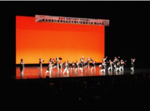 オープニングは「うらじゃ」という岡山県に古くから伝わる「吉備津彦命(きびつひこのみこと)=桃太郎のモデルとされる」と「温羅(うら)=鬼」との戦いを描いた桃太郎伝説から生まれたお祭りを3団体の方々が発表してくださった。1994年にまちづくり,ひとづくり,幸せづくりのきっかけになればと「うらじゃ」が始まったらしい。最後に3団体のすべての踊り子の方と裏方の方がみんなで一緒に踊っていたのがとても印象的で元気をいただいた開会であった。