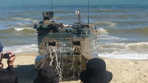 奄美駐屯地・瀬戸内分屯地開設後の2021年7月には、陸自による大規模演習「鎮西29」と称した離島奪還作戦と、自衛隊と米軍による合同軍事演習と訓練の規模拡大が進んでいます。2022年11月以降は、日米合同軍事演習が与論島を除く各島々で「オリエント・シールド」「キーン・ソード」「アイアン・フィスト」と称して行われ、海岸部への着上陸訓練、空挺団による降下訓練、オスプレイ着陸訓練、F15戦闘機によるタッチアンドゴーなどが実施され、鹿児島の離島が日米の合同軍事演習場となっています。