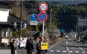 1月25日(日)建設予定候補地となっている中岳麓の国道504号沿いで行いました。2023年12月防衛省が、「さつま町に弾薬庫整備検討」の報道以後、昨年1月から数度の学習会を行い、5月から毎月1回実施してきて、今回で10回目となりました(5月は2回)。この間、地元の「考える会」の方々を中心に、北薩ブロック平和運動センター傘下の近隣市町の仲間や各ブロックからも参加をいただきながら、通行される町民の方々に「弾薬庫はいらない!」の声をアピールしてきています。特に今回は、防衛省がさつま町の中岳周辺に弾薬庫整備を正式決定し、来年度予算に設計費2億円を計上したことが明らかになって最初の行動でもありました。2026年3月まで予定の適地調査が終わっていないにも関わらず、調査途中段階での整備可能の結論に怒りを込めてのスタンディング行動でもありました。施設誘致の推進派の方々は、「疲弊している町の活性化」となるとしています。しかし有事を想定しての弾薬庫建設は、それこそあってはならないが有事の際の町民や周辺の方々の犠牲を考えると許すことはできません。私たちは、今後も建設の白紙撤回を目指して、また南西諸島の軍事増強を許さない思いを込めて、多くの仲間のみなさんととりくみを強化していこうと考えています。