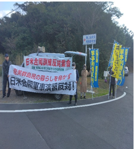 日米軍事訓練反対集会・奄美駐屯地・瀬戸内分屯地前中止要請行動