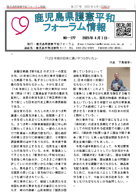 鹿児島県護憲平和フォーラム情報177号が発行されました。