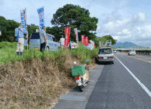 大隅ブロック平和運動センターでは、9月10日、訓練反対の意思表示を国に対して行うよう「鹿屋に米軍はいらない大隅市民の会」など4団体共同で市長への申し入れをしました。そして9月12日(金)9時より海自鹿屋基地の滑走路が見渡せる野里町において日米共同軍事訓練に反対・抗議する市民集会として抗議、スタンディングを約30名の参加で開したところです。県護憲フォーラムの下馬場代表、磨島事務局長にも参加いただき、抗議の声をあげました。