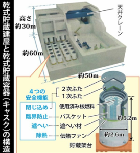 九電は、川内原発の使用済み核燃料の保管容量を増すため敷地内に乾式貯蔵施設の新設を決定し、国の原子力規制委員会に原子炉設置変更許可を申請しました。2027年10月着工し、29年度の運用開始を目指すとしています。使用済み核燃料を青森県六ケ所村にある再処理工場に搬出できない場合でも、1、2号機ともに2038年まで運転が可能となり、新たに7年間の稼働期間を確保することになると説明しています。また、九電は鹿児島支店で会見を開き、担当者は「再処理工場の運転計画や川内の使用済み燃料の貯蔵状況を踏まえ、運転延長の認可を受けた60年まで、安全・安定運転を続けるために設置する」としています。川内原発で現在、使用済み燃料を保管しているプールの貯蔵量は2025年9月末時点で1号機7割、2号機8割で、プールを共用化しても2031年に満杯となります。再処理工場の完成が大幅に遅れる中、対応を迫られています。乾式施設は、プールで20年以上冷やした燃料を金属容器(キャスク)に移し、空気の自然対流で冷やすシステムです。建屋は1、2号機の近くに設け、床面積約1,600㎡、高さ約15mの鉄筋コンクリート1棟に、使用済み燃料棒28体を収容するキャスク20基を設置する計画です。